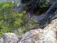 Alright, buckle up, buttercups this aint no Instagram filter. Im perched on the edge of a cliff, looking straight down like Im a rogue James Bond or a high-flying parkour ninja in a Marvel flick. Fifty feet? Nah, thats just the warm-up. Im not falling Im suspended above a wild, leafy, rock-strewn canyon thats basically natures own action set. The waters crashing down like a mini Niagara, and the trees? Theyre like green sentinels guarding my cliffside throne. This is the view that makes your heart do a little thump-thump like its about to launch you into a Netflix thriller. You think youre brave? Try standing here with a GoPro and a Im not scared, Im just contemplating the drop. vibe. This is where the edge of the world meets the pulse of the wild. And if youre not here by 3 p.m., youre just a ghost in the canyon.