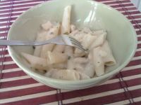 Cook pasta al dente according to instructions on the package. In a saucepan Heat the cream and grated fine cheeses, add a knob nutmeg, salt and pepper and heat up until the cheese is completely dissolved. The vessel Arrange the pasta and heat resistant Pour the sauce it. Put into preheated oven to 180 degrees and bake for about 10 minutes.
