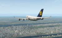 The airplane presented in the picture is a Boeing 747 Lufthansa line is the second largest passenger plane in the world after the Airbus A380 I was flying over New York at 13:00 on the x-plane 11 simulator I took off from the JFK airport in New York.