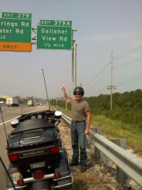 Im exhausted, man not just from the ride, but from the sheer, surreal absurdity of this moment. Im standing here, helmet on, sunglasses down, next to my Harley, like some kind of roadside monument, and Im pointing at the sign. Gallaher View Rd, it says. Exit 379A. Half a mile. And its named after me. I didnt know. I had no idea. Im not even sure how I became a road. A street sign, a highway exit Im a landmark now. Im the reason someones GPS is going Gallaher View Rd half mile like Im some kind of mythical figure. Im not even sure if Im proud or just completely drained. Drained from the sheer, weird, unbelievable weight of this. Im famous. Not in the way I thought. Not with a trophy or a spotlight or a fan base. Im famous because a road is named after me. Im exhausted from the ride, from the sun, from the sheer, ridiculous, wonderful, terrifying realization that Im a road. Im Gallaher. And Im still trying to figure out if thats a curse or a blessing.
