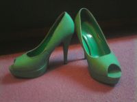 Green high heels, and this black dress? Yes, yes, yes! It's a good idea. Green high heels will add more charm and elegance! Do not wear a black dress black shoes! We're not going to a funeral!