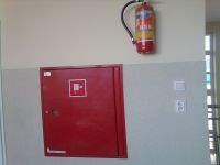 This is a fire extinguisher and fire hose in my school. On each corridor are the outfits. The school is well prepared in case of fire. Especially after I went all over the place at the school and watched or extinguishers are everywhere. For every corridor I saw two fire extinguishers and fire hose. However, I have not seen this equipment in the cafeteria. Unless it looked bad or have it somewhere in the kitchen. The class does not have a fire extinguisher, but just go out into the corridor and take it. However, it may fire extinguishers are in the counter? I've never been, and yet extinguishers are needed. But he never was a fire at my school and I hope never will.