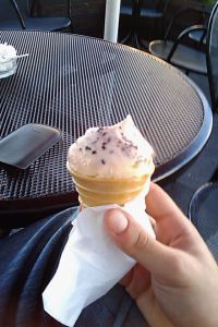 Oh my god, look at this my hands are already trembling with anticipation. Its the sweetest, most decadent afternoon Ive had in ages. This isnt just ice cream, its pure, creamy, cloud-like straciatella heaven on a waffle cone. Im not even kidding my mouth is watering just thinking about that first, glorious, melty bite. Thats right, the kind of ice cream that melts in your mouth like liquid sunshine. The swirls of flavor? You cant even tell whats in there, but I know its got that dreamy, milky, slightly salty-sweet magic. And those little dark specks? Oh, thats the secret maybe crushed berries or chocolate, but Im not telling you what it is, because Im saving the surprise for when I take that first, perfect, sticky, delicious bite. Im already imagining the cold, smooth texture sliding down my tongue, the way it coats my lips, the way it makes me feel like Ive just won the worlds most delicious prize. This isnt just dessert, this is a moment.