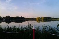 A lake (Old English lacu) is a terrain feature (or physical feature), a body of liquid on the surface of a world that is localized to the bottom of basin (another type of landform or terrain feature; that is, it is not global). Another definition is a body of fresh or salt water of considerable size that is surrounded by land. On Earth a body of water is considered a lake when it is inland, not part of the ocean, is larger and deeper than a pond.[2][3] The only world other than Earth known to harbor lakes is Titan, Saturn's largest moon, which has lakes of ethane, most likely mixed with methane. It is not known if Titan's lakes are fed by rivers; Titan's surface is carved by numerous river beds. There is evidence that Mars once held lakes of water.