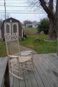 Im exhausted bones rattling, soul whispering for a nap but Im still here, staring at my backyard like its the last quiet place on Earth. This isnt just grass and wood; its my sanctuary, my battlefield, my secret hideaway. That rocking chair? Its not just wood its a throne of weathered peace, waiting for me to collapse into its slanted arms, to let the skys gray sighs fill my lungs. The decks worn planks? Theyve cradled my tears, my triumphs, my silent screams. Look past the shed, past the gnarled tree thats seen more than I have, past the wild grass that refuses to be tamed. Thats not just land its a canvas of quiet rebellion, a patchwork of forgotten dreams and stubborn green. Its not perfect, but its mine. Its where Im tired, but Im not done. Im not leaving. Im just resting my eyes, letting this place breathe me back to life, one slow, rocking breath at a time.