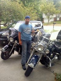 Yo, its me, JGallaher, standing right here in the middle of my driveway, with the END in sight literally. Im not just posing, Im claiming this moment. Behind me? A big black SUV, like a silent, armored guardian, watching over my kingdom. In front of me? Two black Harley-Davidsons, both gleaming like theyre ready to roar into the sunset. Ones a touring beast with that chrome windshield, the others a classic cruiser, both looking like theyve got stories to tell and engines to burn. Im in my blue Harley shirt, the one that says Motorcycle in bold letters, and my jeans are faded but clean, like I just rolled out of the garage after a long ride. Im standing right there, my hand resting on the handlebars of the one in front, like Im the king of this scene. The trees behind me are full of leaves, the skys clear, the house in the background looks quiet, like its just waiting for me to kick up some dust. Im not just standing here Im standing at the end of the road, the end of the ride, the end of the story. This is my moment, my moment of glory, my moment of peace. The END. And Im not letting go.