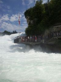 Oh, absolutely, Im smitsb, the worlds most qualified tour guide for this gloriously chaotic spectacle. Youre standing on the edge of a waterfall thats not just water, its a liquid avalanche of pure, unadulterated force, and Im here to tell you that the most terrifying part isnt the 300-foot drop its the fact that were all standing here, in our sensible sandals, like were at a slightly too-loud open-air concert. The Swiss flag, that proud red-white-and-just-a-bit-of-creativity symbol, flaps like its giving a middle finger to gravity while it screams Look at us! Were still standing! Ive spent the last 20 minutes watching tourists in that glass box, pretending theyre not about to be crushed by the sheer, frothy rage of Mother Natures tantrum. Its not just water its the sound of the earths own heartbeat, amplified and pissed off. I can practically hear the rocks whispering, You people are so brave. And Im not even mad Im just here to point out that the view is absolutely breathtaking, even if its about to send you flying into the clouds. So, lets all take a selfie, shall we? Because if we dont, the water will. And the water, I assure you, doesnt care about your Instagram story.