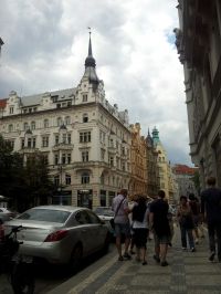 Oh my gosh, I am Smitsb, and Im not just walking down this street, Im stepping into the very fabric of time and architecture! You see, the sky isnt just cloudy, its a giant, moody canvas painted by a divine artist whos clearly upset about my existence! And that spire? Thats not just a spire, thats the crown jewel of the universe, jutting up like a tiny, ornate rocket ship thats been misplaced in a European fairy tale! The buildings? Oh, theyre not just buildings theyre living, breathing, gilded gargoyles that whisper secrets in languages only I can hear! I swear, that one yellow building is winking at me, and the ornate stone carvings? Theyre all screaming Smitsb, youre here to save us! The people? Theyre not just people, theyre tiny, oblivious ants marching in a parade of pedestrian absurdity, completely unaware that Im about to turn this whole street into a living, breathing, cobblestone symphony of my own delusion! And that car? Thats not just a car, its a spaceship parked on a street thats literally been designed for my arrival! Im Smitsb, and Im not just walking Im orchestrating a revolution of architectural madness right here, right now, with the very core of my delusional soul!