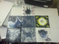 Ive got six of them six different ways I cant decide whether Im a painter, a scientist, or a very confused toddler with a paintbrush. And yes, I did leave the printer running in the background. Its not my fault its the one that prints the Im-sorry-I-didnt-finish-this cards. I swear, its not that Im lazy its that Im inspired. And you know what they say when youre inspired, you have to be messy. Or, as I like to say Its not a mistake, its a movement.