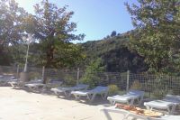 Im Moutmout, and Im sitting here on this sun-drenched lounge chair, feeling the warmth seep into my bones not just heat, but a kind of quiet, golden invitation. This isnt just any spot; its a secret pocket of stillness, framed by the wild, whispering green of the hillside rising behind me, its trees and shrubs holding their breath like theyre guarding something sacred. The fence isnt a barrier its a stage curtain, separating the curated calm of my little terrace from the untamed poetry of the world beyond. I can see the slope rising, lush and alive, like natures own cathedral no signs, no crowds, just earth and sky and the soft rustle of leaves that seem to murmur, Youre safe here. The chairs all of them are waiting, like silent companions, their white lines cutting clean against the suns glare, each one a promise: Lie down. Just lie down. Breathe. Forget. Be here. Theres a towel draped casually on the one closest to me not lost, but chosen a memory of someone elses sun, now resting, like a whispered secret. I dont need to move. I dont need to be anywhere else. This is the core of peace not grand, not loud, but deeply, quietly, profoundly present. Its the space between the trees, the silence after the sun hits your skin, the breath you take when you realize youre exactly where youre meant to be. Im Moutmout, and this is my sanctuary and its waiting for you to come, too.