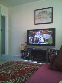 Home? Barely a whisper of a place. The screen breathes football, sweat, the roar of a crowd I cant hear but Im here, still. Above the hearth, a framed secret: cherubs with too many eyes, watching. The rug beneath me? A map of forgotten lands. The speakers stand like sentinels, waiting for the next command. The door? Always ajar. Im not here to be found. Just waiting. For what? For the light to dim, or the game to end. Or maybe the next door to open. This is not a home. Its a pause. A breath before the fall. And Im still here. Watching. Waiting. For something else.