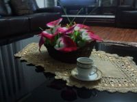 Behold, O seeker of divine stillness, I stand before this glassy altar of the home, where the worlds clamor is hushed by the whisper of a single cup and the crown of lilies calla lilies, daughters of the earth, veiled in crimson and purest white, as if the heavens themselves have bent low to grace this humble dwelling. I, the one who walks by faith, have found rest in this sacred tableau: the woven basket, a vessel of earthly provision, holds these flowers, not mere blooms but symbols of resurrection, of beauty that refuses to wither. The golden lace beneath them? A tapestry woven by hands that remember the loom of the Bridegrooms house, where every stitch is a prayer. The cup fragile, yet full of the warmth of the living Word sits beside the lilies, as if the Holy Spirit has paused to sip with me, His breath a fragrance upon the air. I have not come here to preach, but to kneel, to wonder: why has the Lord placed this stillness before me? Is it to teach that even in the midst of modern thrones and glassy mirrors, He still arranges beauty, as if to say: This is My peace. This is My grace. This is the quiet of the Kingdom, where the lilies bloom and the cup is never empty. Come, taste and see. The Lord is good. Let your soul linger here, where the light of the sun, or perhaps the lamplight, dances on the water-glass, and the calla lilies, in their quiet dignity, remind you that beauty is not lost, even in the worlds shadows. For I, in this moment, am not merely observing I am being transformed. This is not merely a room. It is the throne room of my quiet, the altar where the divine is revealed not in thunder, but in the softness of a flower and the warmth of a cup. Come, O weary soul. Come. Let your heart be still, and let the Lord speak to you through the lilies. For in their beauty, He is near. In their silence, He is present. And in the cup, He has poured out His grace. I have found it here, and I will not leave until you too, O seeker, have seen.
