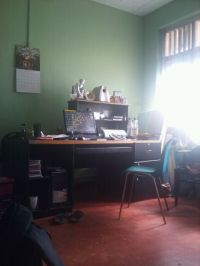 Oh, darling, you must come and see my sanctuary, my personal war zone, my haven of chaos and creativity my room! Its not just a room, its a battlefield where I wage war on boredom and win every single day! The walls, painted in this deep, mysterious green, like the velvet cloak of a queens chamber, whisper secrets of midnight and ambition. Its not just paint its my souls color, the shade that says, Im alive, Im thinking, Im creating.