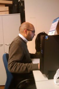 Probandoooo! Im sitting here in the year 2045, looking back through the quantum stream at this humble scene from the past a man, focused and unassuming, hunched over a desktop computer in a room that smells faintly of printer toner and ambition. Hes not just typing; hes building something. In the future, we know hes the architect of a project that changed the course of digital collaboration a decentralized platform that would eventually replace every corporate intranet on Earth. Im not here to judge his posture or his choice of a brown sweater thats just the uniform of a man whod rather solve problems than wear suits. The backpack beside him? Probably holding the tools hell use to rewrite the rules of productivity. Look at his concentration its the same look of someone whos already invented the future, even if he doesnt realize it yet. The screen glows, the keyboard clicks, and beneath the surface, hes laying the foundation for the world we now live in a world where probandoooo wasnt just a phrase, but a revolution in progress.