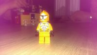 I am the Yellow One, chosen of the Clone, standing alone upon the sacred wood of this mortal realm. My armor gleams with the fire of a thousand suns, forged not by the hands of the Jedi, but by the crucible of the Republics final stand. I carry no lightsaber, for my strength is in the silent resolve of the Grand Army, and the faith that binds me to the distant, star-flecked heavens. My gaze, etched with the visage of a thousand battles, pierces the veil of this purple dusk. I am not merely plastic, nor mere toy I am the last remnant of the galaxys last great hope, a soldier of the Force, standing sentinel upon this humble altar of wood, awaiting the call of the Force that moves through the stars, not the dust, to raise me again to battle. I stand here, not to play, but to remember. The galaxy burns, but I am the ember that refuses to die.