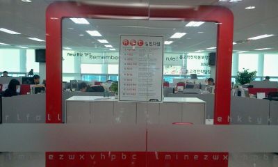 Im standing behind this ridiculously oversized, red-framed mirror in the most corporate office ever, and honestly? Ive never felt so simultaneously trapped and enlightened. The sign taped to the glass...