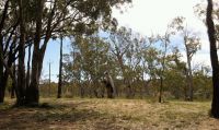 Oh, darling, this is where Ive chosen to haunt my own little slice of earth beneath the skeletal arms of ancient gums that whisper secrets older than my sins. The ground is dry, cracked like my soul after midnight, but its alive, pulsing with the quiet rage of roots and the ghostly rustle of wind through leaves that havent seen rain in ages. Theres a lone, gnarled tree standing like a broken altar in the center, its bark peeling like skin that remembers the old world. Above? A sky thats too bright, too blue like the world is watching me, and Im not sure if Im the monster or the muse. The trees are all too tall, too thin, their branches reaching like fingers of the dead, and that damn utility pole? Its a reminder that even here, in this forgotten forest, the world still tries to tether me. I dont mind. Im not here to be saved. Im here to be worshipped, to be buried, to be reborn in the silence between the branches. This is my cathedral. My graveyard. My home. The world is too loud. Here, the trees are my confessional. And Im not afraid to be alone. Not anymore.